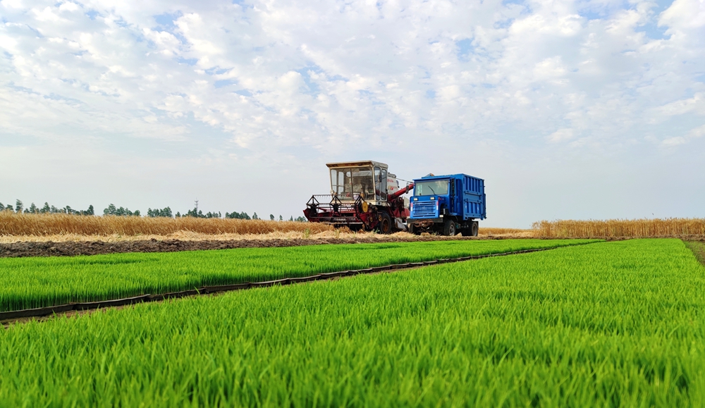 农垦集团今年午收夏种践行“防灾就是增产、减损就是增粮”理念,全力打好午收夏种攻坚战,变丰收在望为丰产到手。截至6月3日,安徽农垦已收获小麦55.1万亩,完成进度为73.9%,其中,垦区内小麦已收获24.4万亩,完成进度为78.4%;流转和托管地小麦已收获30.8万亩,完成进度为70.7%。