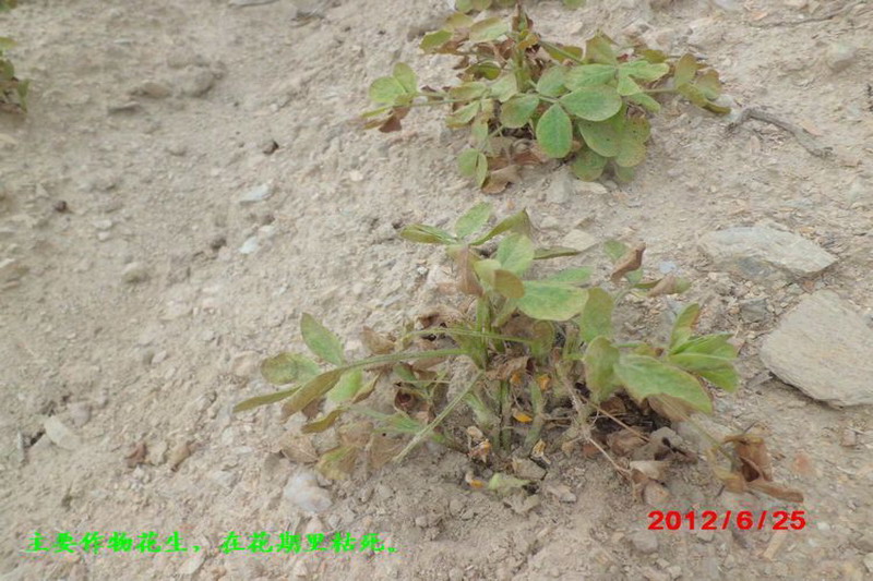 农场地处皖东丘陵地区,位于江淮分水岭之脊,农地大多分布在山坡丘岗之上,土壤沙石含量高、保水肥性差,近年来恶劣气候频仍、旱魔徘徊不去。当前不断发展的旱情,致使上游大多塘坝干涸、农田龟裂,沉重打击了农业生产,农场职工春季种植的玉米、花生、甜叶菊、山芋、籽瓜等作物,虽然采取了地膜覆盖、带水移栽、拖水保苗等农艺措施,但面对持续干旱,也只是杯水车薪、难以抗衡,在地作物普遍生长发育不良,大多枯萎或是僵死,正在遭受灭顶之灾。
